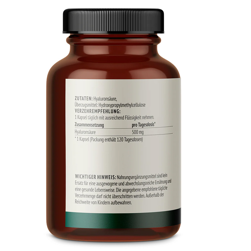• 500 mg Hyaluronsäure pro Kapsel in hochdosierter Form